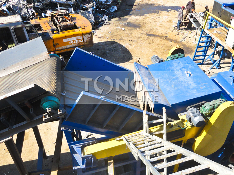 摩托車破碎機處理原理,主要是利用電力帶動機倉內(nèi)的錘頭對進入到料倉內(nèi)的廢金屬進行充分的破碎處理,錘頭不斷地敲擊容腔中的物料,直到機倉內(nèi)的廢棄金屬料小合規(guī)后,方可從底部的篩孔掉落至出料傳送帶上,進而被運往磁區(qū)域進行鋁鐵分離,經(jīng)磁后的金屬料分類明確,方便存儲,利于出售。