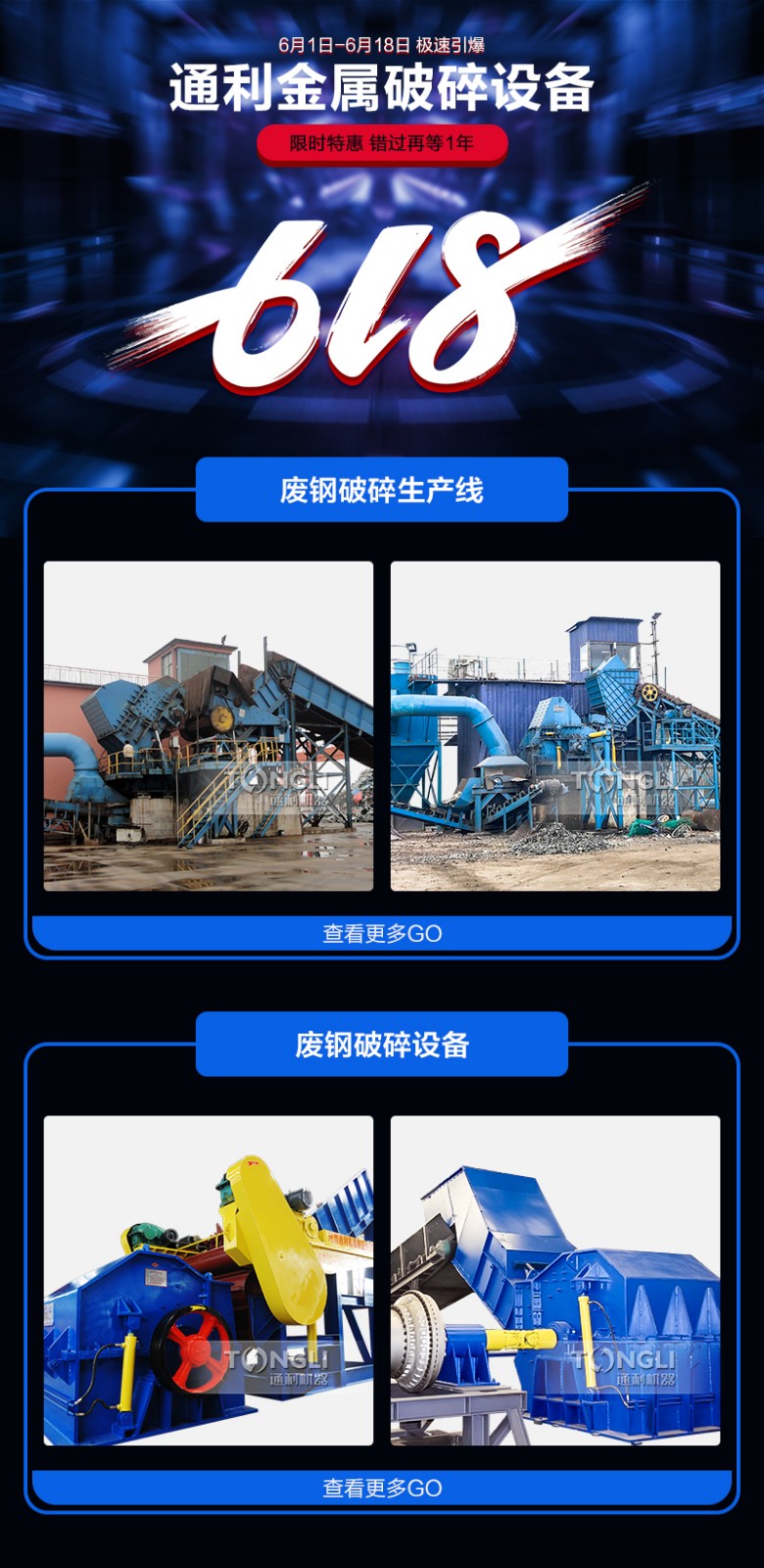 喜迎“6·18”通利金屬破碎機設備面促銷進行中,有需要的客戶請直接聯(lián)系我們,為您提供適合您廠區(qū)使用的設備的資料和報價,方便您在線對比挑,我廠提供試機服務,歡迎廣客戶朋友前來廠區(qū)試機考察。