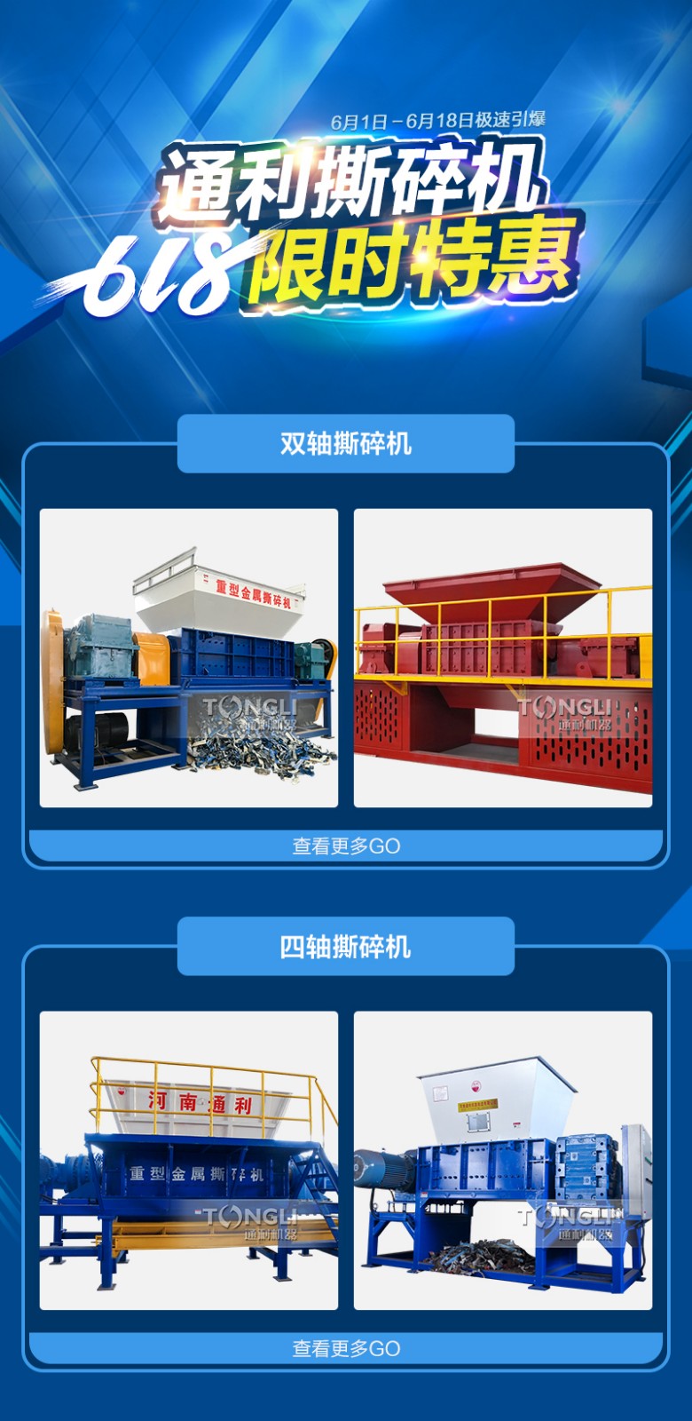 一年一度的6.18馬上要來臨了,各個廠家,網(wǎng)購app,實體店等等都紛紛為了這次活動卯足了勁兒,這不,趁著此次活動,河南通利廠家也來搞個促銷,廠區(qū)現(xiàn)有的中小型金屬破碎機,單機,整套購買均有不同折扣的惠活動,款款現(xiàn)貨等您來。